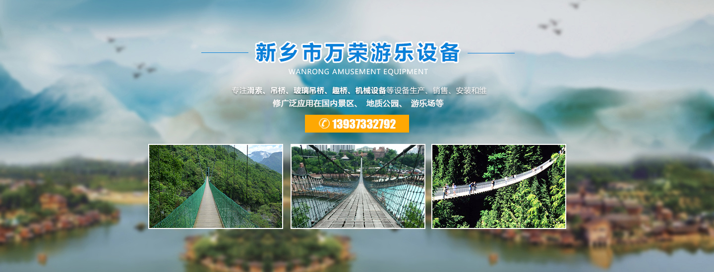 歡迎進入新鄉(xiāng)市萬榮機械有限公司官網(wǎng)!關(guān)鍵詞:玻璃水滑廠家,吊橋廠家, 景區(qū)吊橋價格, 滑索廠家, 游樂吊橋廠家, 玻璃吊橋, 防腐木吊橋廠商 ,景區(qū)吊橋, 滑索設備, 吊橋生產(chǎn)廠家, 吊橋多少錢, 木板吊橋, 吊橋施工廠家